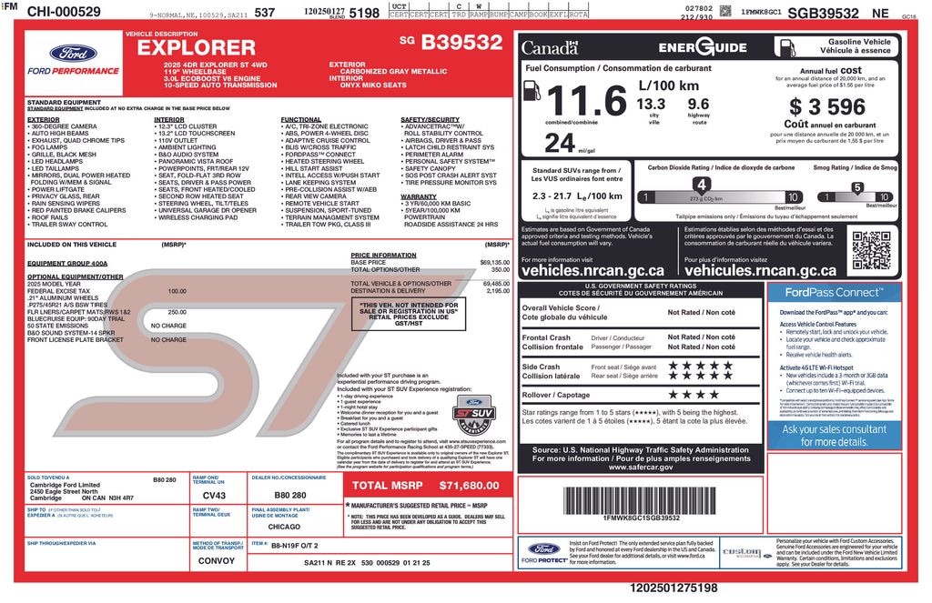 McGovern Ford of Lowell is proud to present this...Carbonized Gray Metallic 2025 Ford Explorer ST 4WD 3.0L EcoBoost V6 10-Speed Automatic Clean CARFAX.