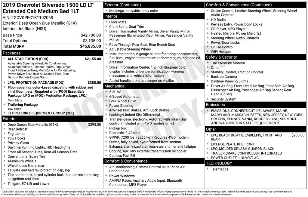 Deep Ocean Blue Metallic 2019 Chevrolet Silverado 1500 LD LT 4WD EcoTec3 5.3L V8 6-Speed Automatic Electronic with Overdrive